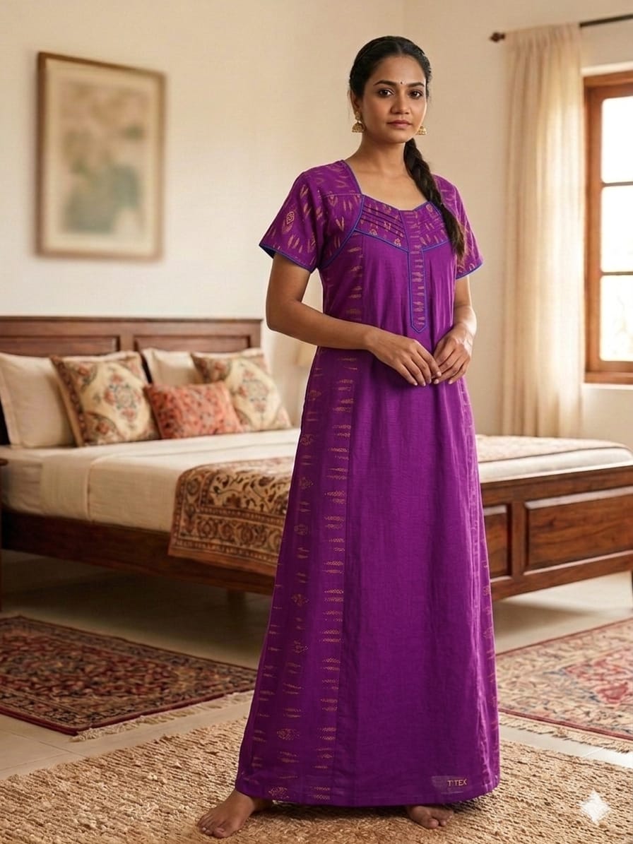 Experience ultimate comfort and style with our Magenta XL Nighty featuring an elegant Piping style. Made from 100% Cotton Fabric, this premium nightwear ensures supreme softness, breathability, and ease of movement. Carefully crafted for a relaxed and comfortable fit, it includes a convenient side pocket for your essentials. Perfect for a peaceful night’s sleep or simply lounging at home.
